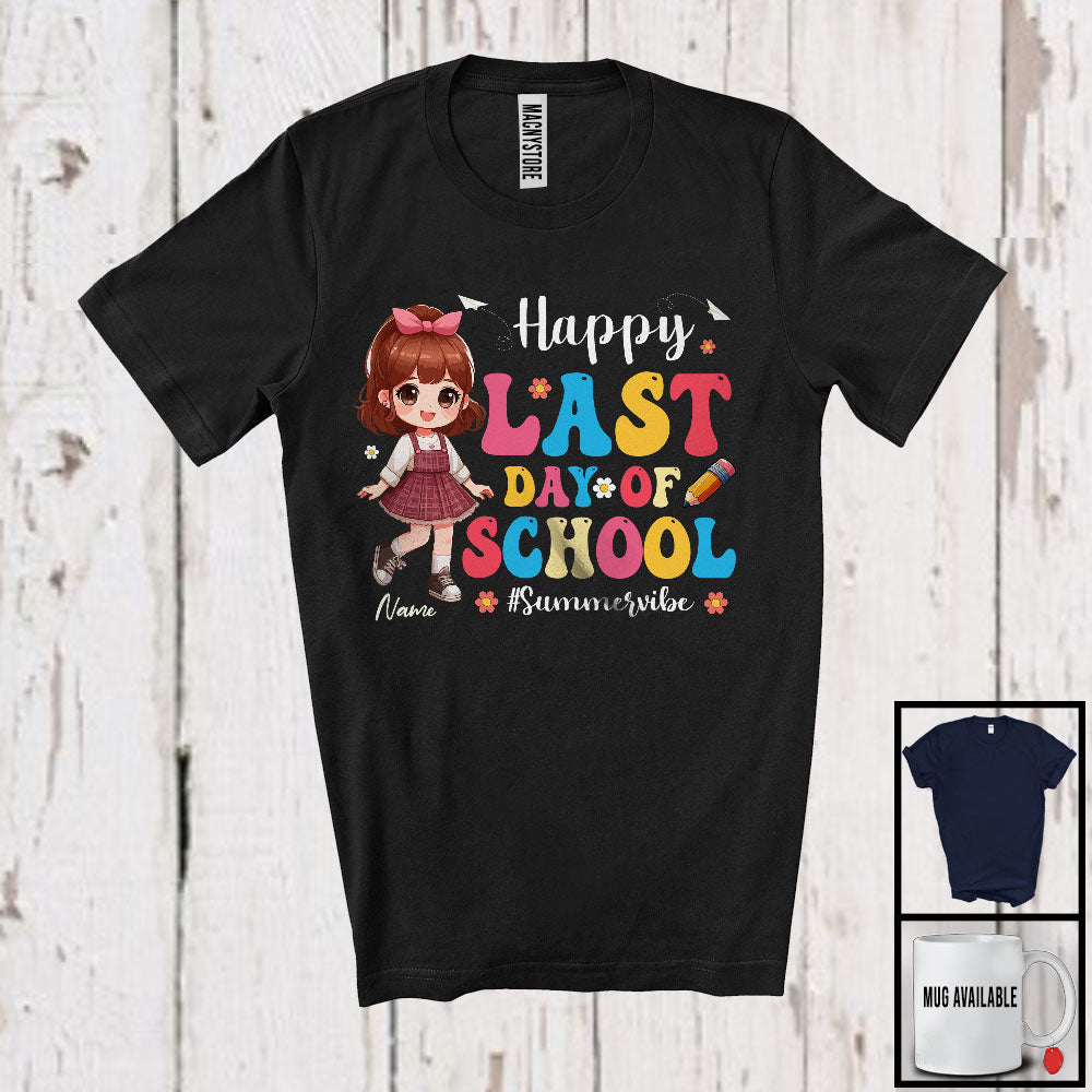 Personalized Happy Last Day Of School, Lovely Summer Vacation Custom Name Girl, Flowers Students T-Shirt