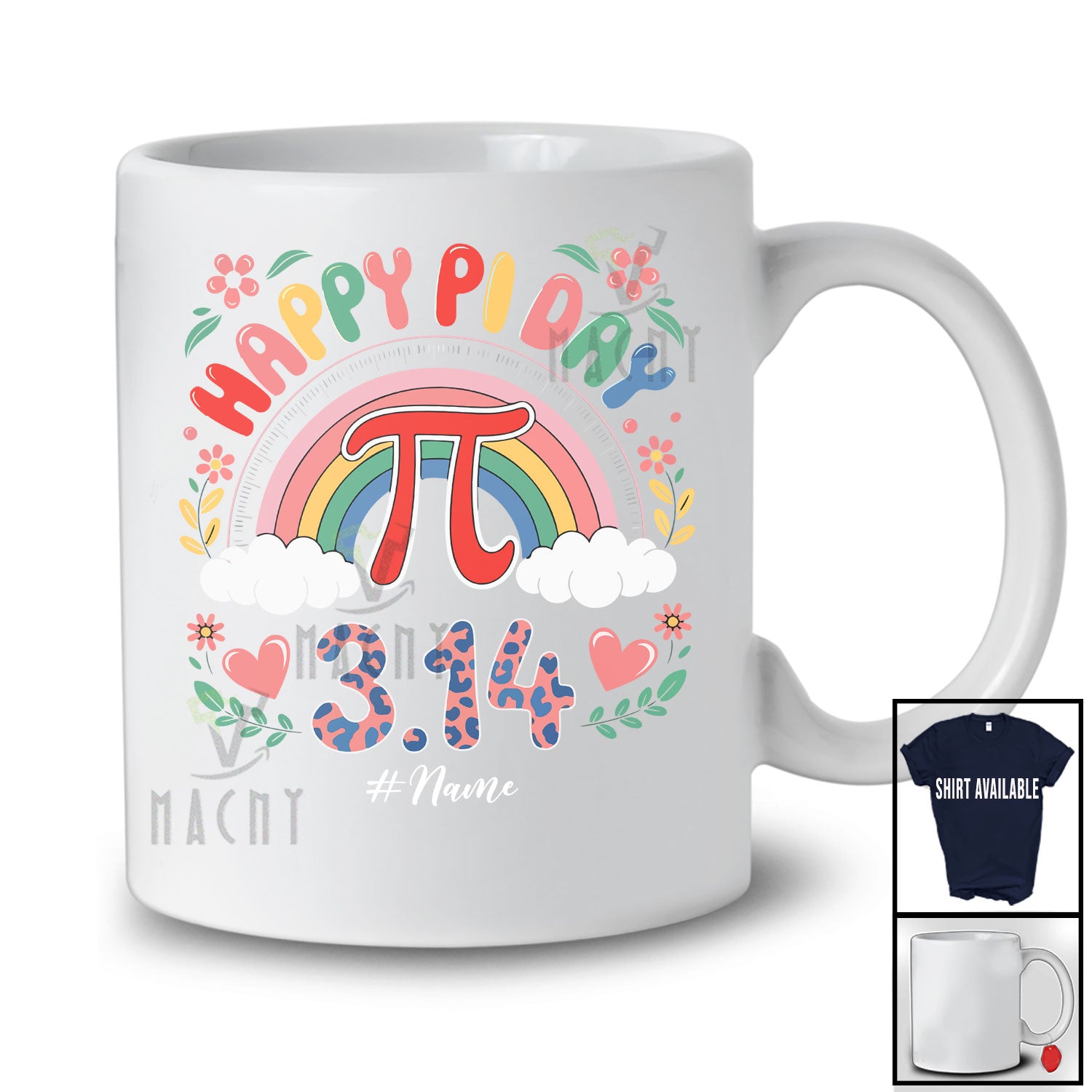 new MacnyStore - Personalized Happy Pi Day 3.14; Amazing Math Leopard Rainbow; Custom Name Student Teacher T-Shirt – Macnystore