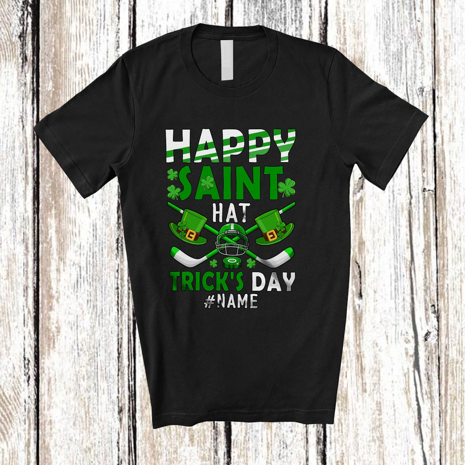 Personalized Happy Saint Hat Trick's Day; Joyful St. Patrick's Day Custom Name Ice Hockey Player T-Shirt