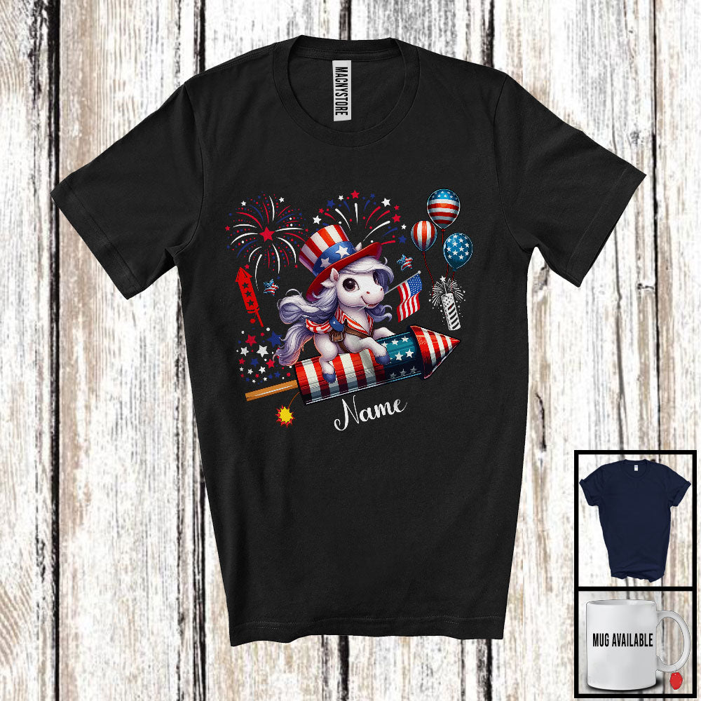 Personalized Horse Riding Firecracker, Lovely 4th Of July USA Flag Custom Name, Farm Animal T-Shirt