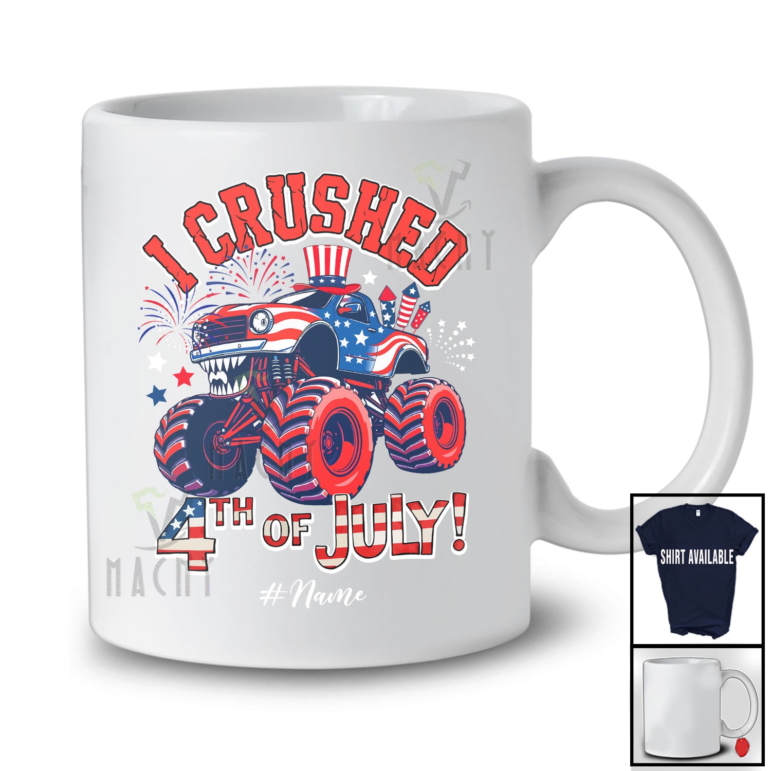 Personalized I Crushed 4th of July; Amazing Custom Name Boys Monster Truck; Patriotic T-Shirt. This cotton t-shirt is a durable staple product with a classic fit. One of the most popular items, it has a relaxed style made for everyday and casual wear.