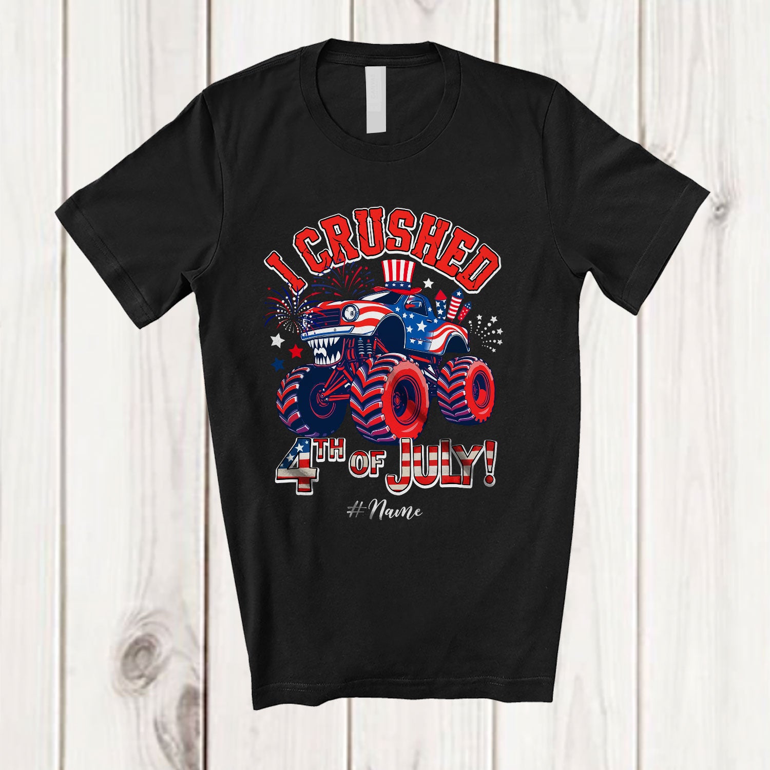 Personalized I Crushed 4th of July; Amazing Custom Name Boys Monster Truck; Patriotic T-Shirt