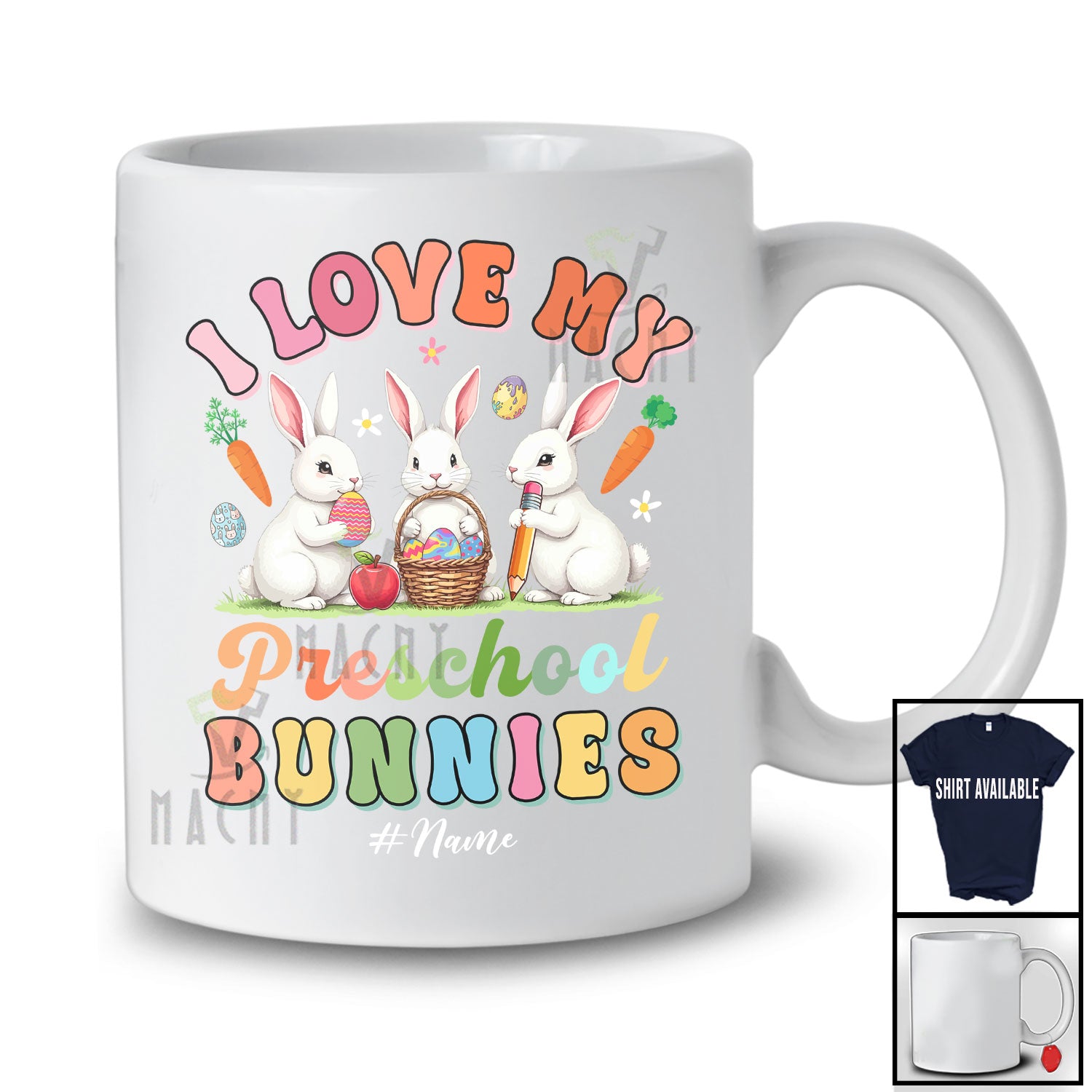 new MacnyStore - Personalized I Love My Preschool Bunnies; Lovely Easter Egg Basket; Custom Name Student Teacher T-Shirt – Macnystore