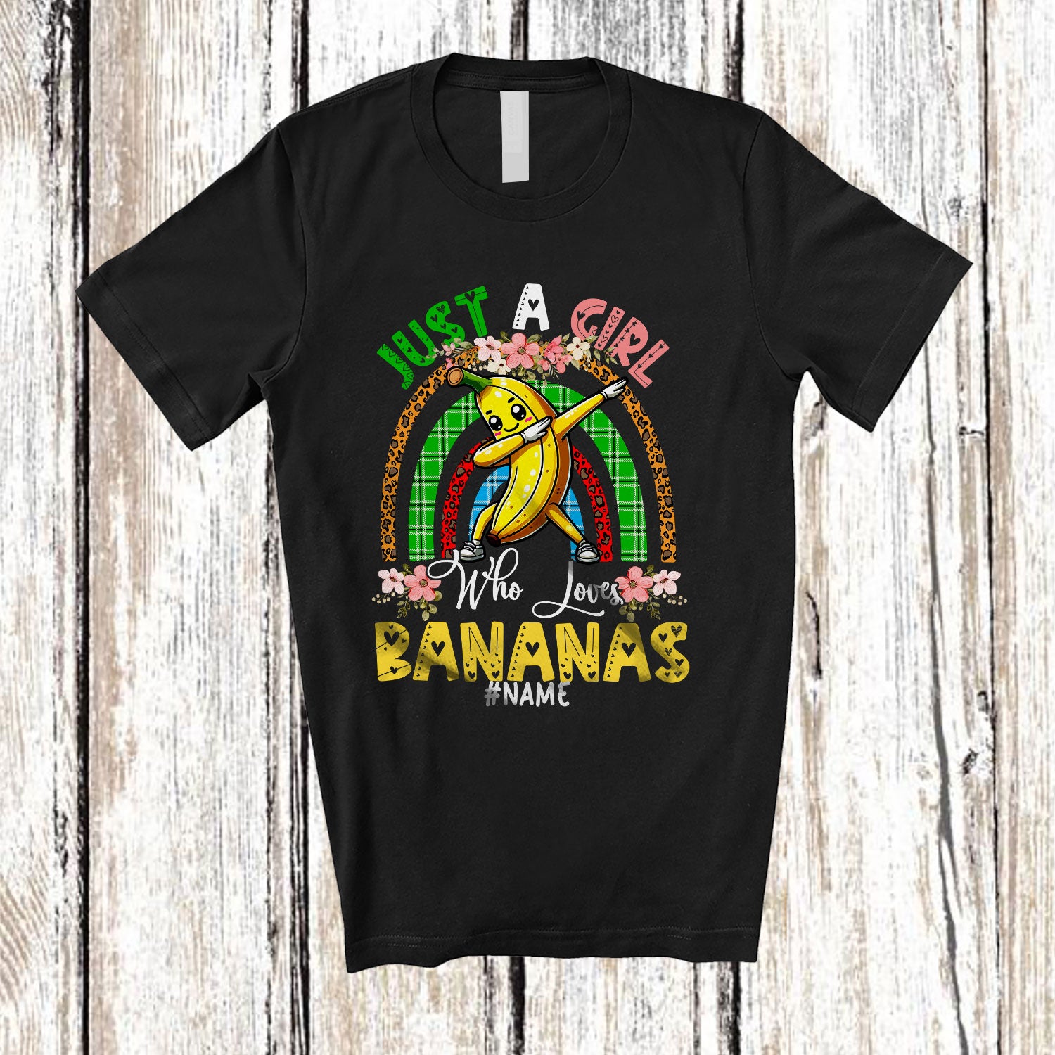 • Personalized Just A Girl Who Loves Bananas; Cheerful Leoard Plaid Rainbow Dabbing Banana Lover T-Shirt. This cotton t-shirt is a durable staple product with a classic fit. One of the most popular items, it has a relaxed style made for everyday and casual wear.