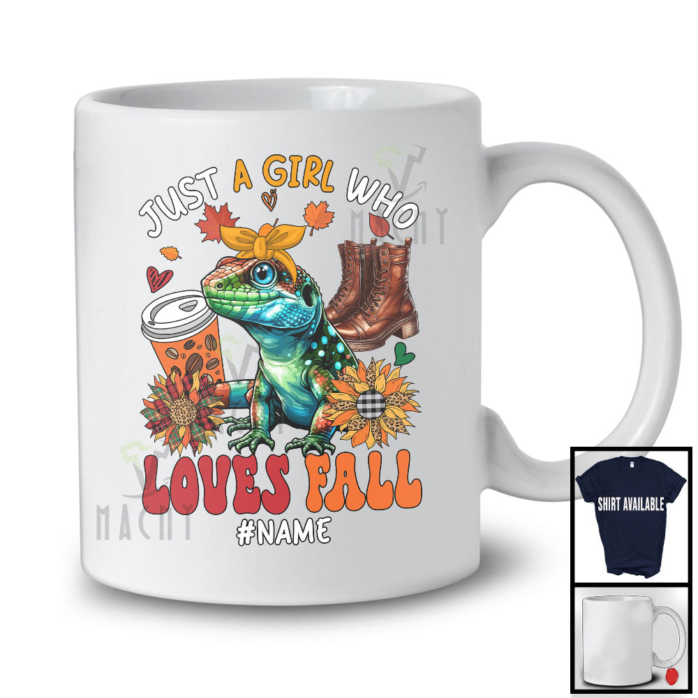 • Every product is unique, just like you. If you're looking for a product that fits the mold of your life, the Personalized Just A Girl Who Loves Fall; Adorable Custom Name Lizard; Fall Plaid Sunflowers T-Shirt is for you.