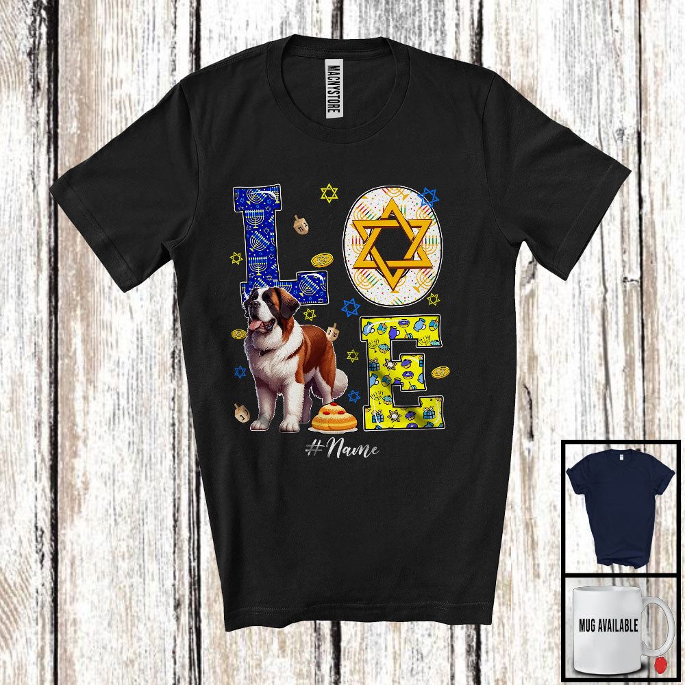 new MacnyStore - Personalized LOVE; Happy Hanukkah Decoration Custom Name St. Bernard Owner; Family Group T-Shirt – Macnystore