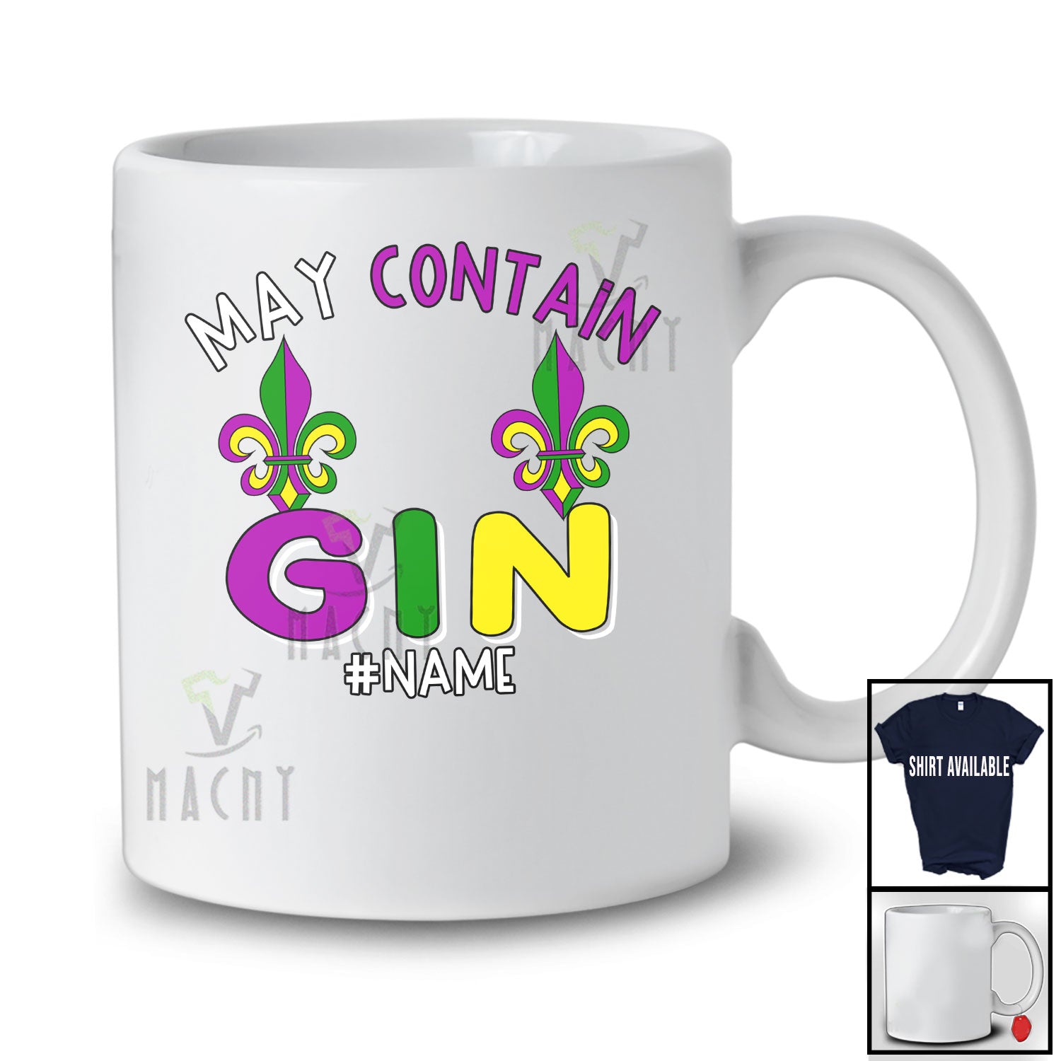 Personalized May Contain Gin; Joyful Mardi Gras Custom Name Women; Bra Fake Drinking T-Shirt. This cotton t-shirt is a durable staple product with a classic fit. One of the most popular items, it has a relaxed style made for everyday and casual wear.
