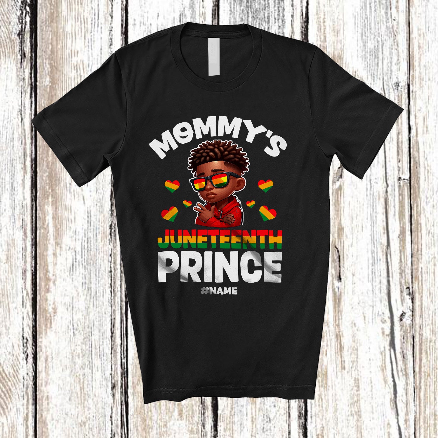 Personalized Mommy's Juneteenth Prince; Joyful Black History Month Custom Name Boy Afro T-Shirt