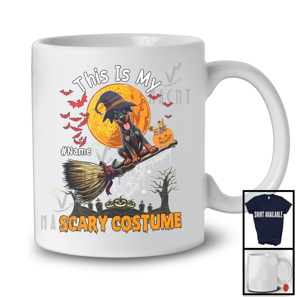 Personalized My Scary Costume, Lovely Halloween Custom Name Doberman, Witch Broom T-Shirt. This cotton t-shirt is a durable staple product with a classic fit. One of the most popular items, it has a relaxed style made for everyday and casual wear.