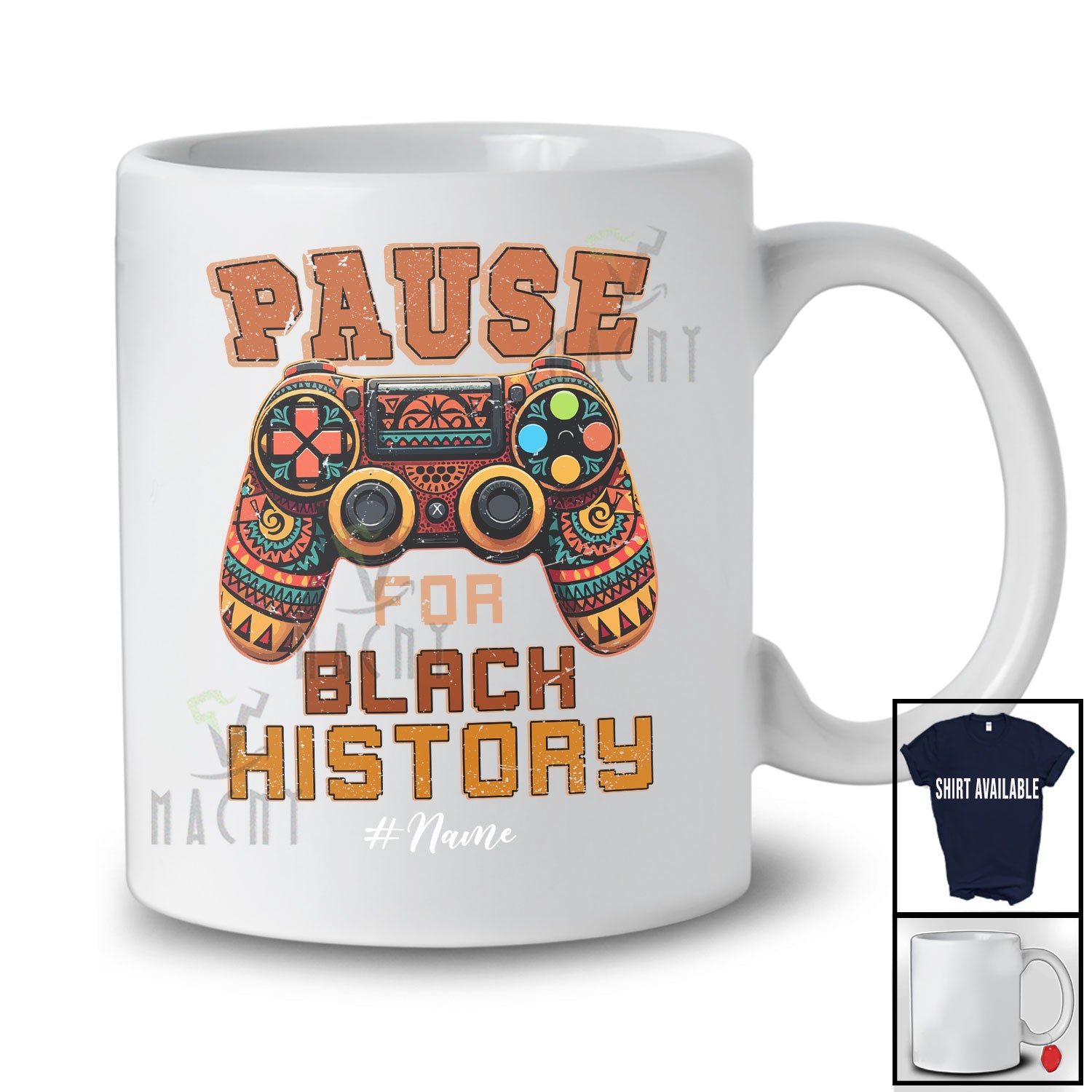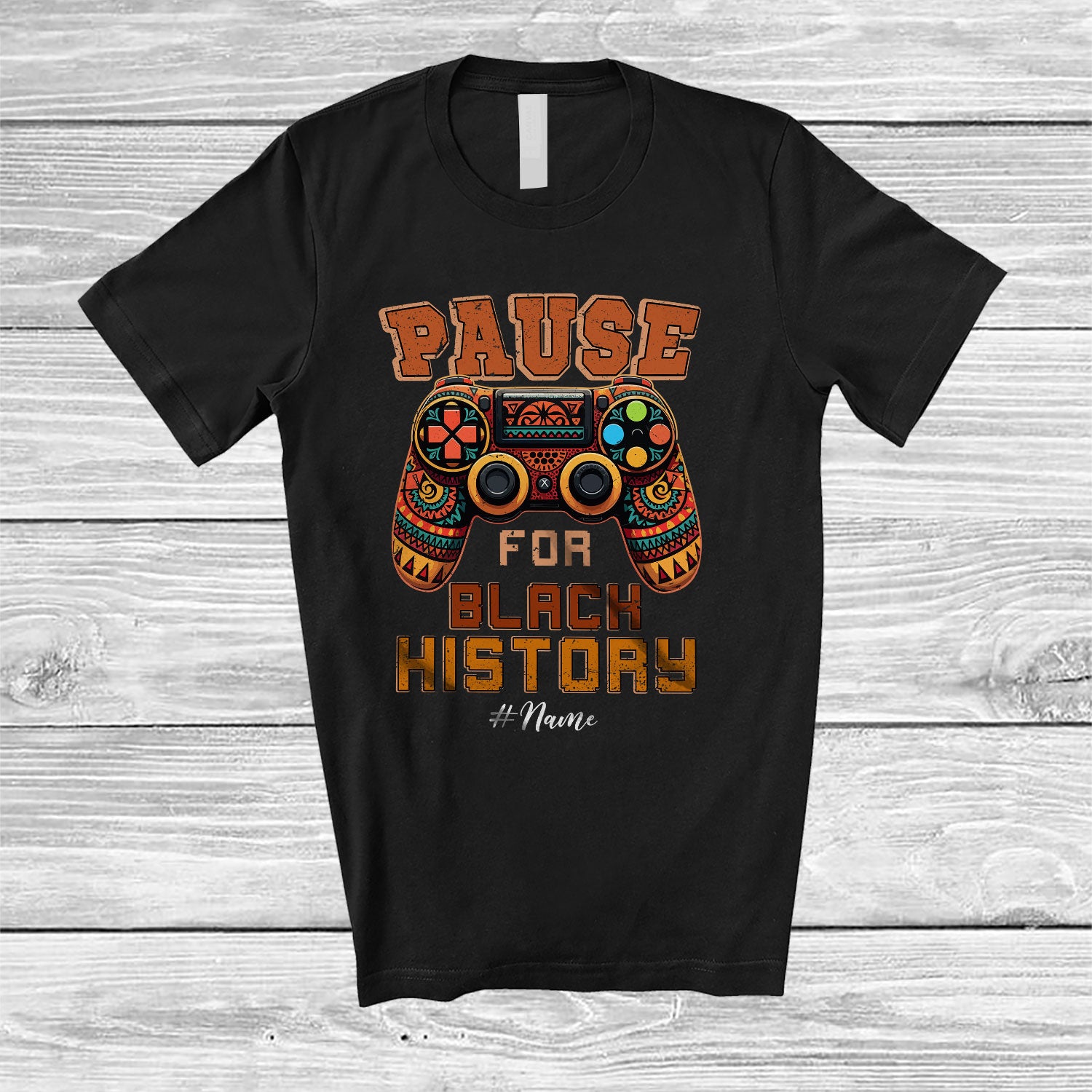 Personalized Pause For Black History; Cheerful Black History Month Afro Custom Name Gamer T-Shirt