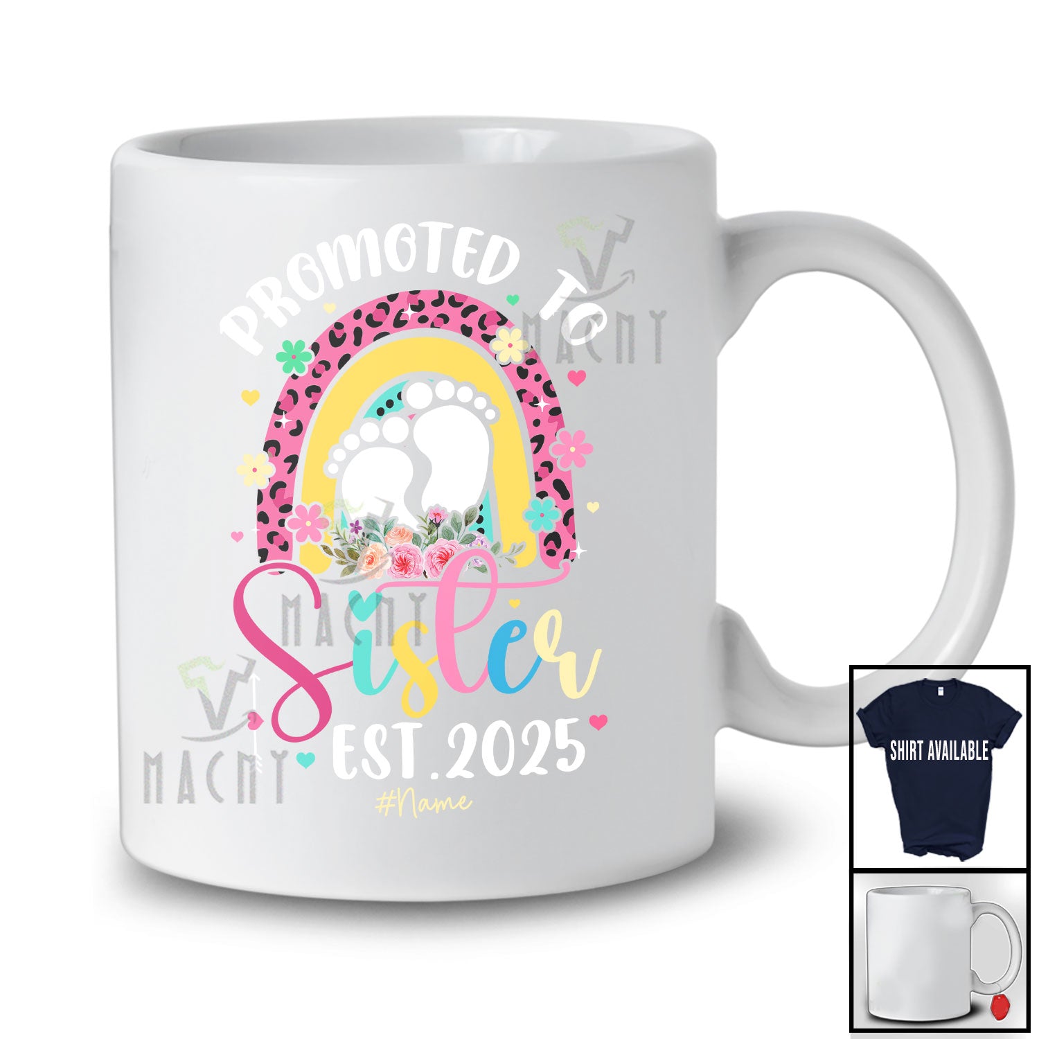 new MacnyStore - Personalized Promoted To Sister Est 2025; Lovely Pregnancy Leopard Rainbow; Custom Name Family T-Shirt – Macnystore