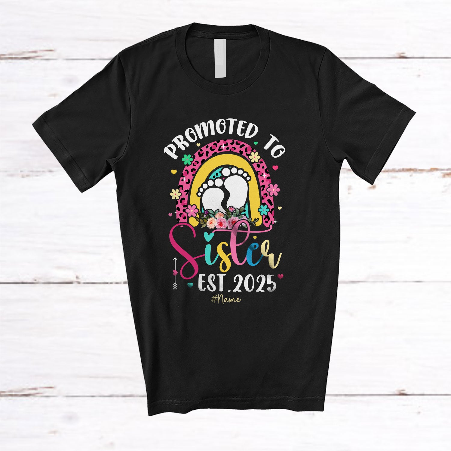 • The Personalized Promoted To Sister Est 2025; Lovely Pregnancy Leopard Rainbow; Custom Name Family T-Shirt is the yin, to your yang. You've found what you're looking for.