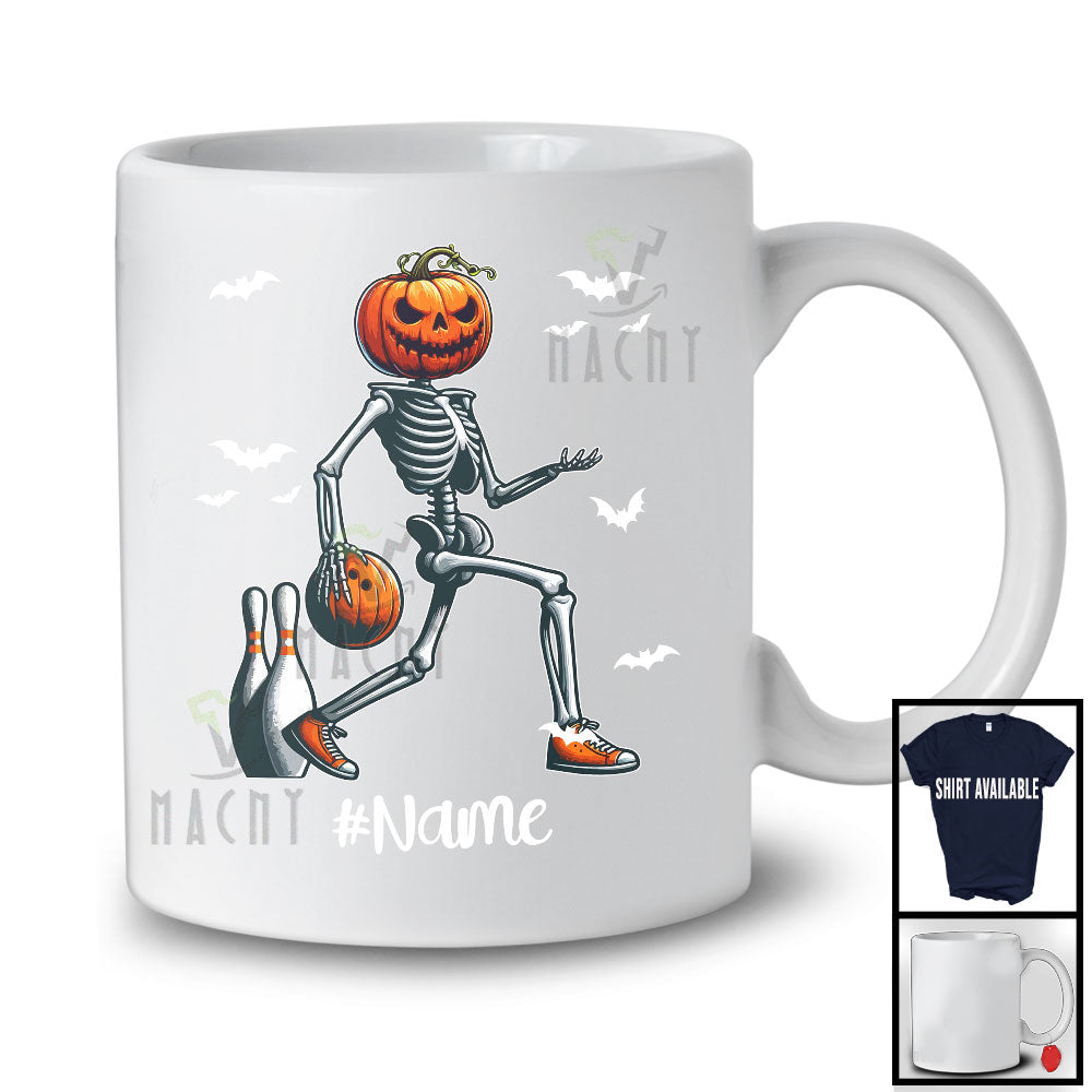 new MacnyStore - Personalized Pumpkin Skeleton Playing Bowling, Horror Halloween Custom Name Bowling Player T-Shirt – Macnystore
