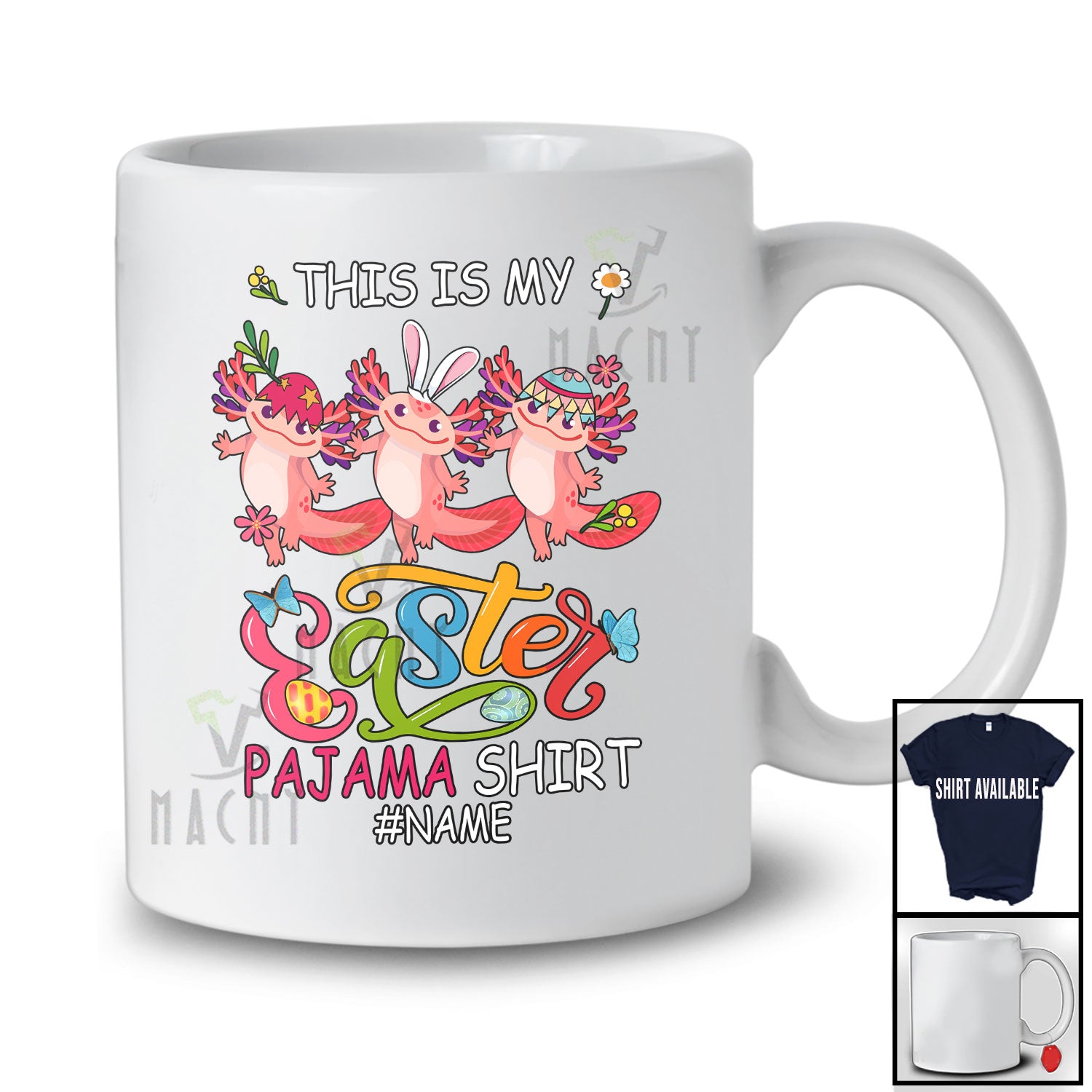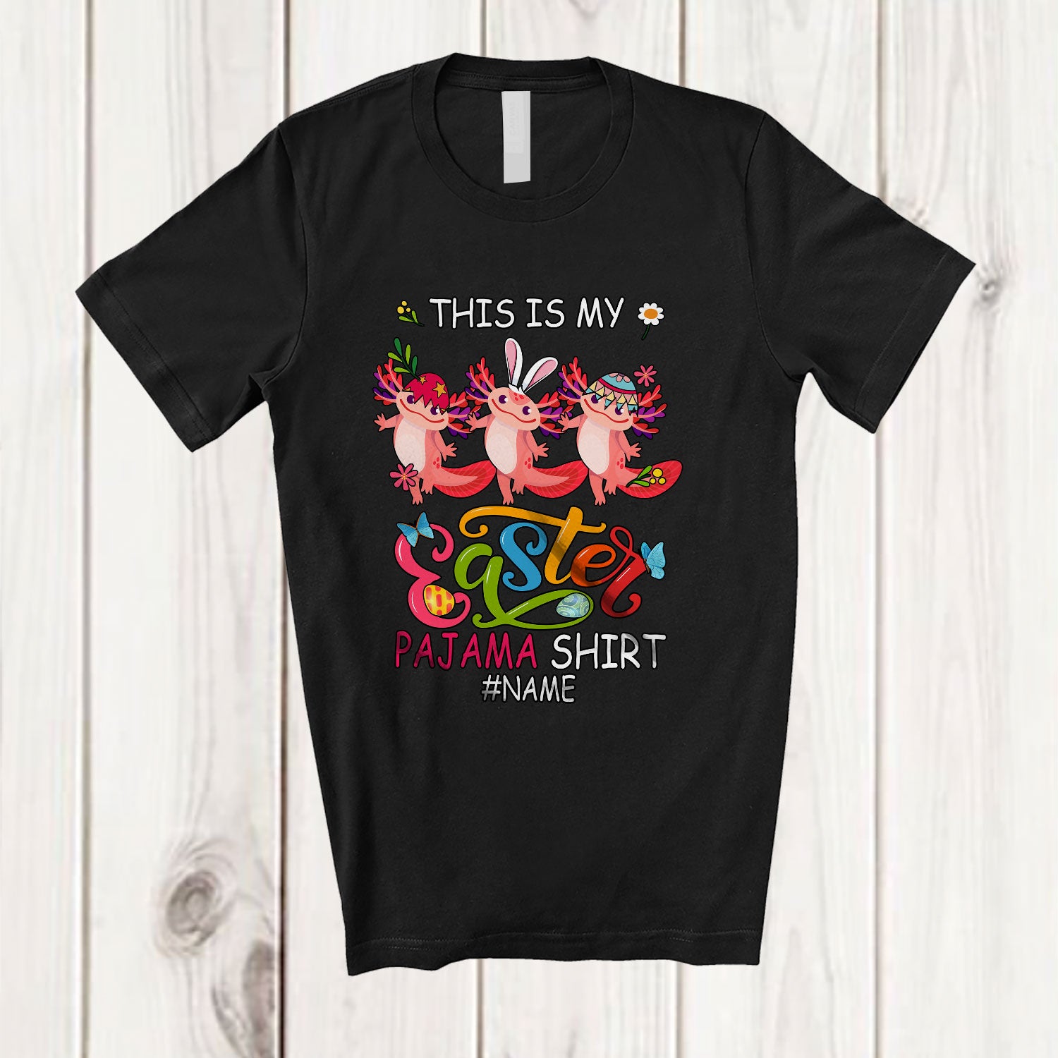 • Personalized This Is My Easter Pajama Shirt; Lovely Custom Name Axolotl Eggs Bunnies; Family T-Shirt. This cotton t-shirt is a durable staple product with a classic fit. One of the most popular items, it has a relaxed style made for everyday and casual wear.