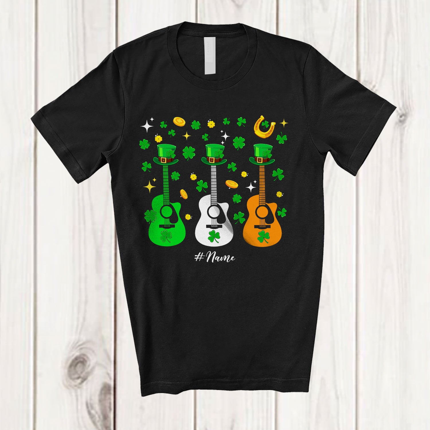 • Personalized Three Guitar Leprechaun; Joyful St. Patrick's Day Guitar Player; Music Lover T-Shirt. This cotton t-shirt is a durable staple product with a classic fit. One of the most popular items, it has a relaxed style made for everyday and casual wear.