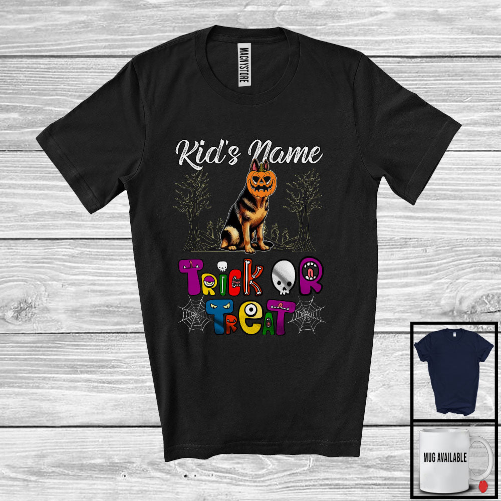 Personalized Trick Or Treat, Humorous Halloween German Shepherd Custom Name, Pumpkin Face T-Shirt