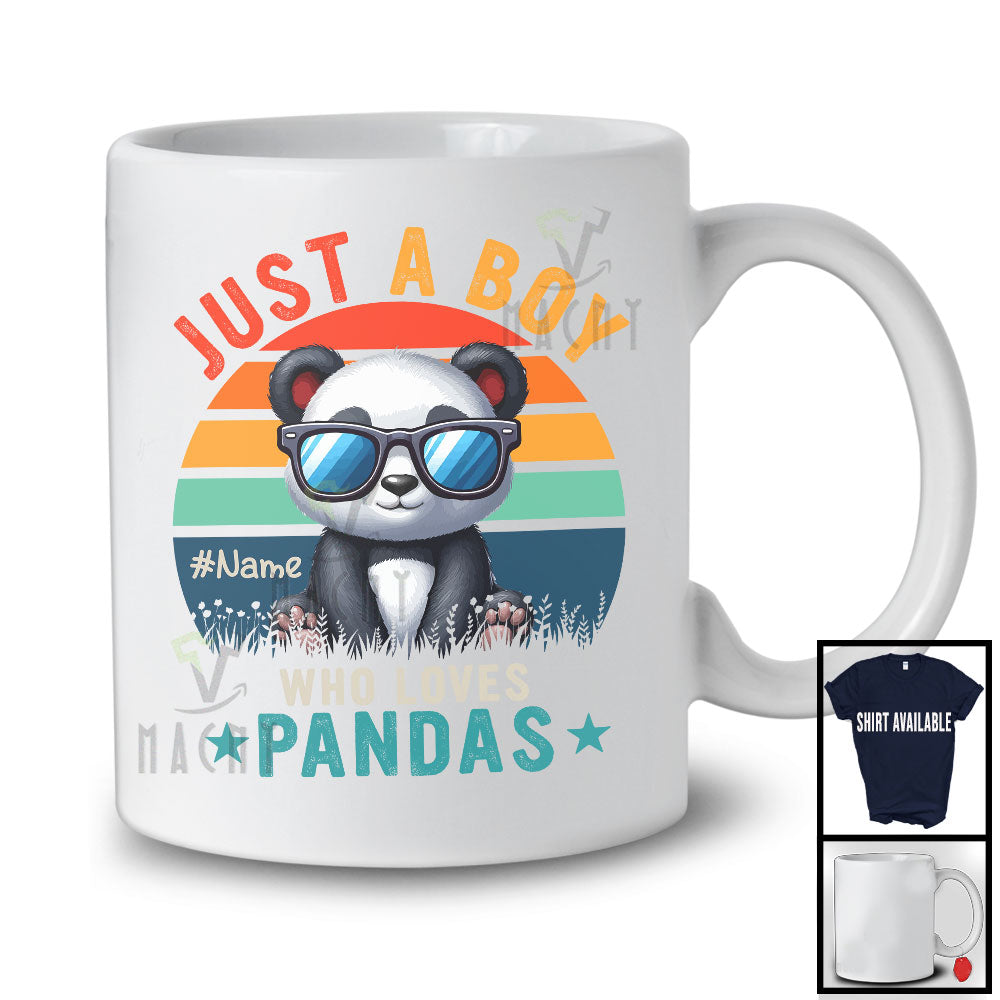new MacnyStore - Personalized Vintage Retro Boy Who Loves Pandas; Lovely Custom Name Animal Sunglasses T-Shirt – Macnystore
