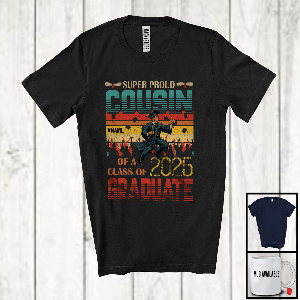 new MacnyStore - Personalized Vintage Retro Cousin Class Of 2025 Graduate, Super Proud Graduation Custom Name Boy Family T-Shirt – Macnystore