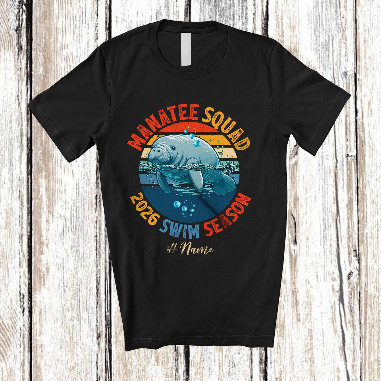 Personalized Vintage Retro Manatee Squad 2026 Swim Season; Lovely Custom Name Swimming T-Shirt