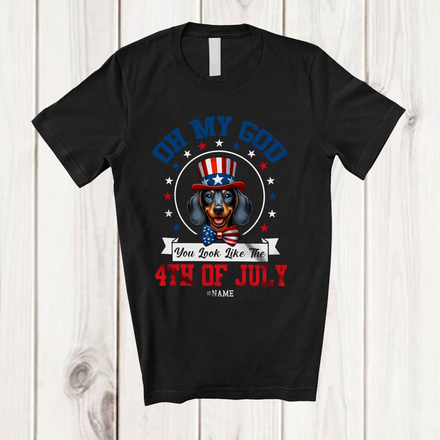 • Personalized You Look Like the 4th of July; Lovely Custom Name Dachshund Owner; Patriotic T-Shirt. This cotton t-shirt is a durable staple product with a classic fit. One of the most popular items, it has a relaxed style made for everyday and casual wear.