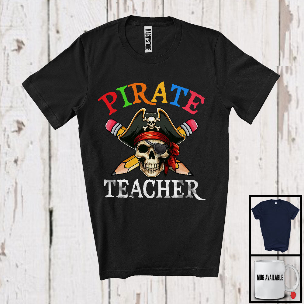 Pirate Teacher, Humorous Pirate Skull Pencil Lover, Matching Teaching Teacher Family Group T-Shirt
