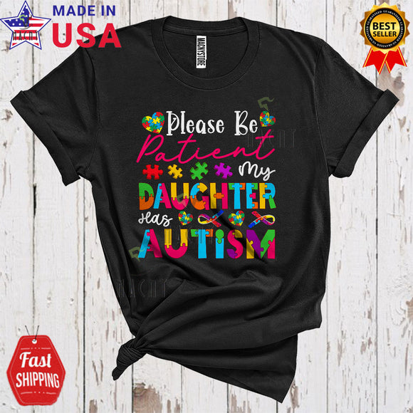 Please Be Patient My Daughter Has Autism Cool Cute Autism Awareness Family Puzzle Ribbon T-Shirt