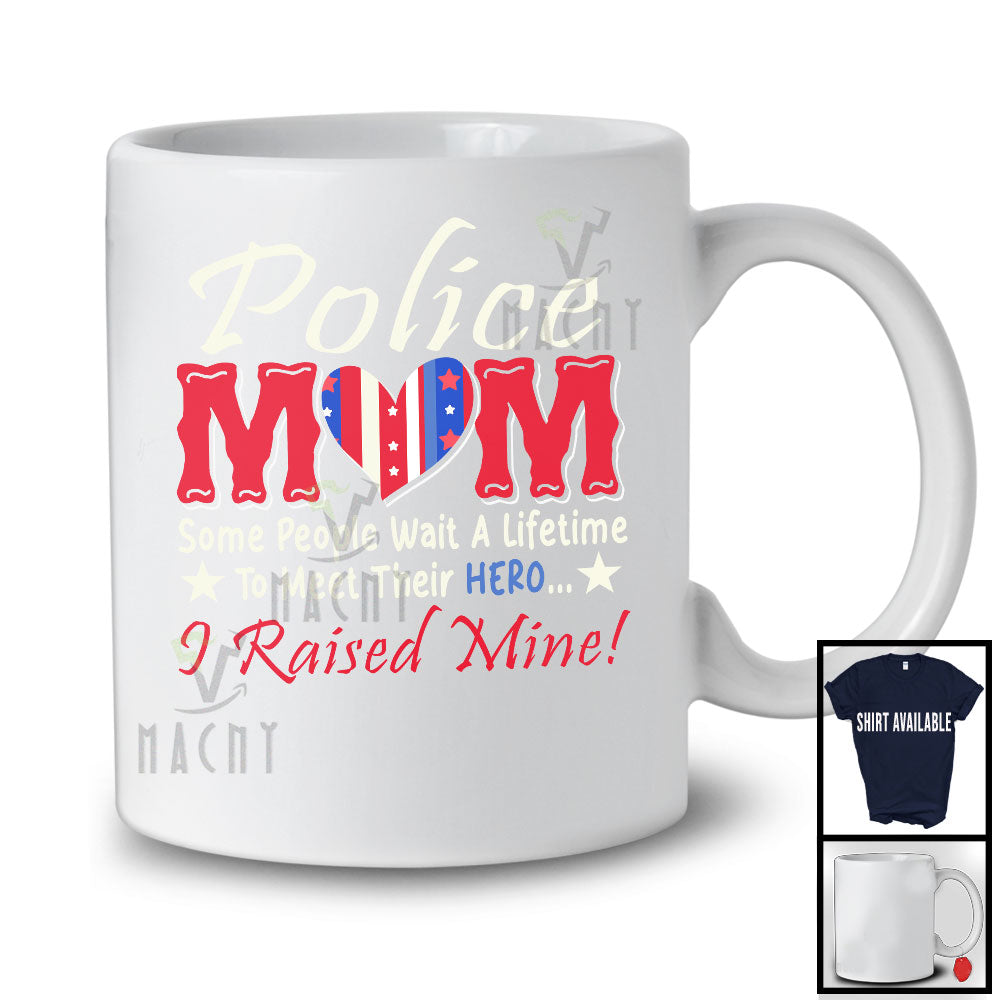 Police Mom I Raised Mine, Proud Mother's Day American Flag Heart, Matching Family Group T-Shirt. This cotton t-shirt is a durable staple product with a classic fit. One of the most popular items, it has a relaxed style made for everyday and casual wear.