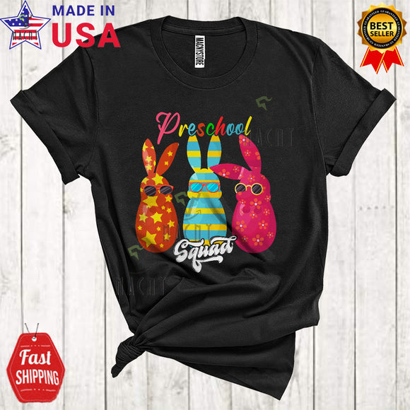 Preschool Squad Cool Funny Easter Day Three Bunnies Wearing Sunglasses Egg Hunt Group T-Shirt