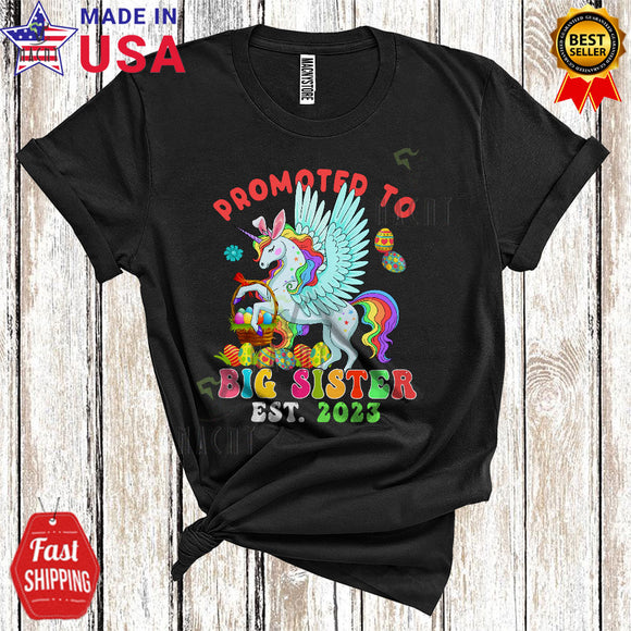 Promoted To Big Sister EST 2023 Cute Cool Easter Pregnancy Announcement Bunny Unicorn Family T-Shirt