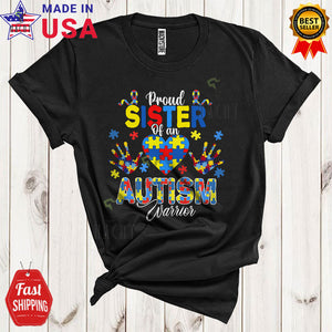 This Proud Sister Of An Autism Warrior Cool Funny Autism Awareness Puzzle Hands Heart T-Shirt is great idea gift for your family, friends in this birthday, christmas, mother's day, father's day, patrick's day or any holiday. Proud Sister Of An Autism Warrior Cool Funny Autism Awareness Puzzle Hands Heart T-Shirt 5.3-ounce, 100% cotton (99/1 cotton/poly (Ash) & 90/10 cotton/poly (Sport Grey)
