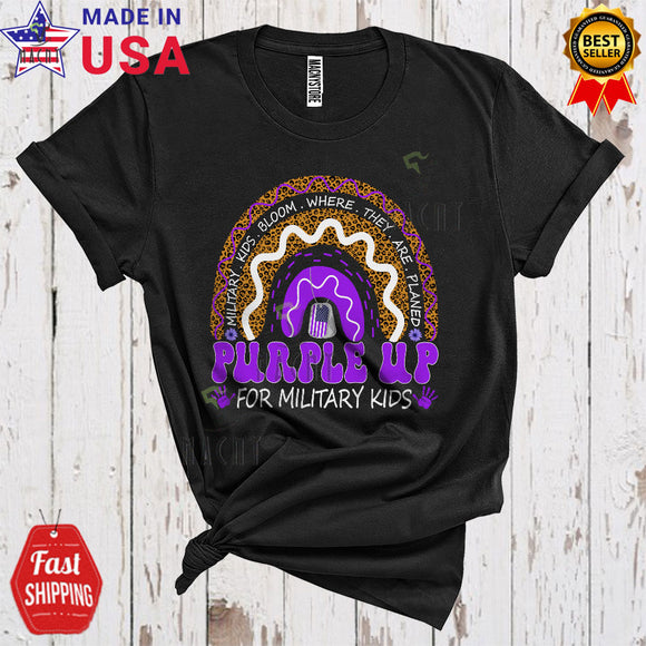 Purple Up For Military Kids Cool Month Of The Military Child Soldier Veteran Leopard Rainbow T-Shirt