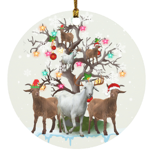 Goat Santa ELF Reindeer On Christmas Tree SUBORNC Circle Ornament