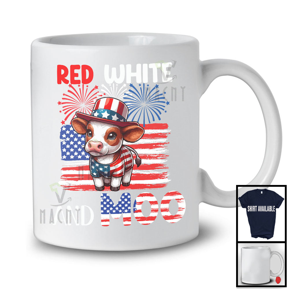 Red White And Moo, Adorable 4th Of July Hat American Flag Cow, Patriotic Farm Animal Farmer T-Shirt