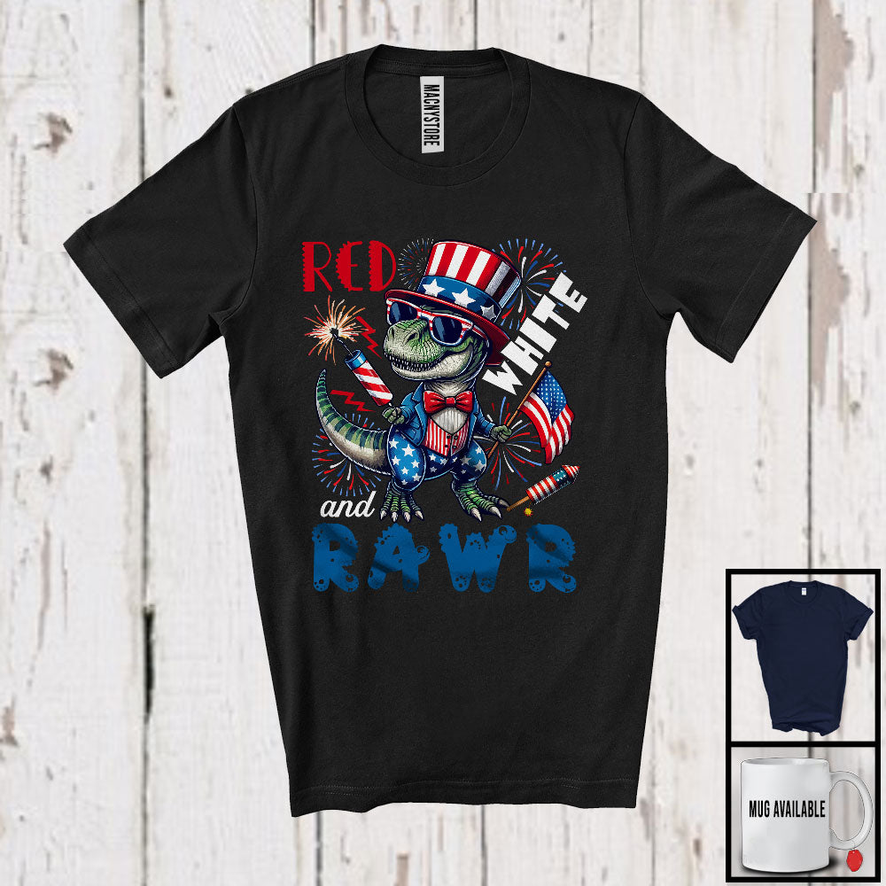 Red White And Rawr, Joyful 4th Of July T-Rex Dinosaur, USA Flag Fireworks Patriotic Group T-Shirt
