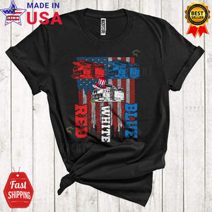 Red White Blue Cool Proud 4th Of July American US Flag Patriotic Fire Truck Driver T-Shirt