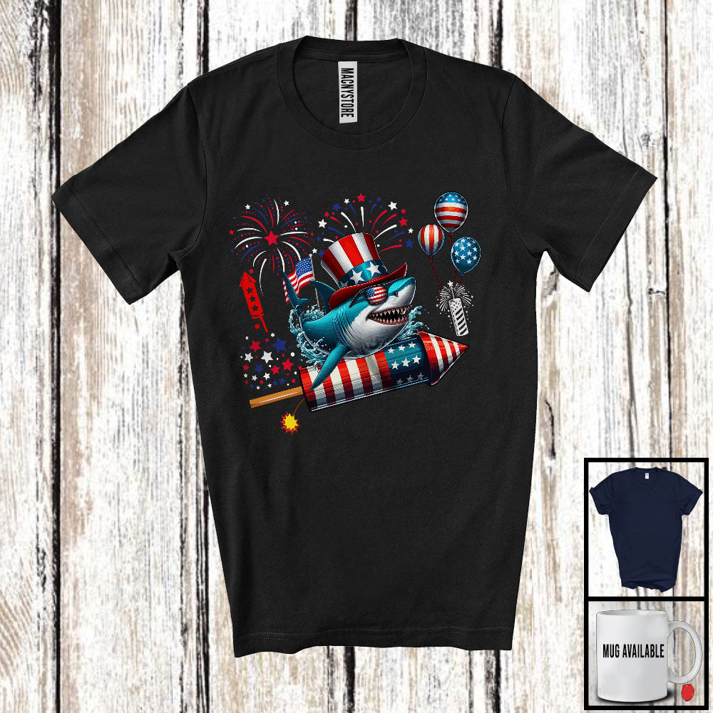 Shark Riding Firecracker, Amazing 4th Of July American Flag Firecracker, Fish Sea Animal Lover T-Shirt