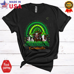 Shenanigans Coordinator Funny Cool St. Patrick's Day Shamrock Leopard Three Cows Farmer T-Shirt
