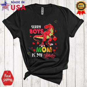 Sorry Boys Mom Is My Valentine Funny Cute Valentine's Day Single Hearts T-Rex Dinosaur Family Lover T-Shirt