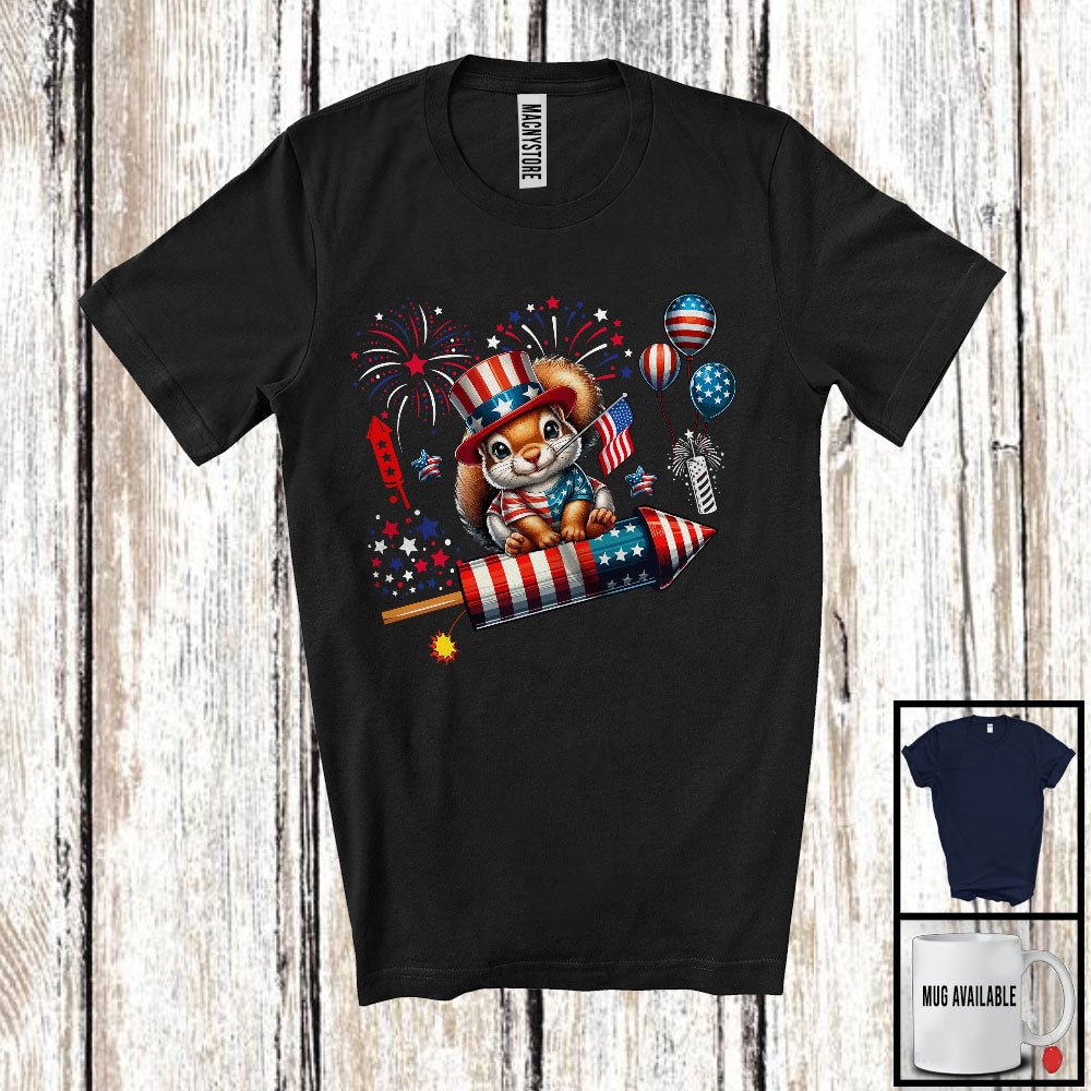 Squirrel Riding Firecracker, Amazing 4th Of July American Flag Firecracker, Animal Zoo Lover T-Shirt