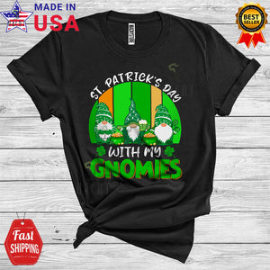 St. Patrick's Day With My Gnomies Cute Funny St. Patrick's Day Three Gnomes Drinking Drunk T-Shirt
