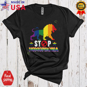 Stop Homophobia Cool Proud LGBT LGBTQ Support Lesbian Gay Pride Rainbow Lion Lover T-Shirt
