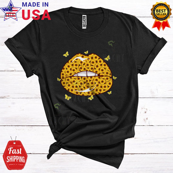 Sunflower Lips Shape Cute Cool Sunflower Butterfly Lips Flowers Lover Family Group T-Shirt