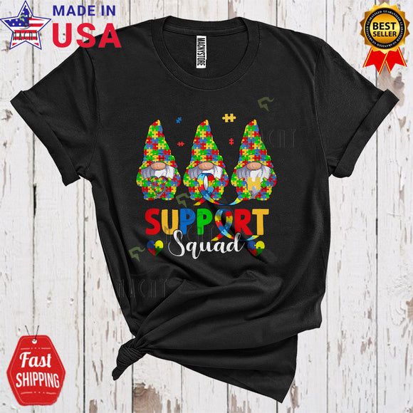 Support Squad Cool Cute Autism Awareness Puzzle Ribbon Gnomes Group Lover T-Shirt