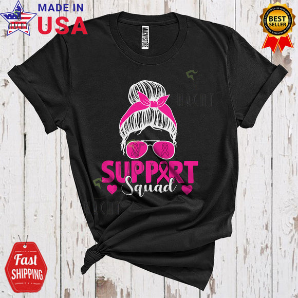 Support Squad Cool Cute Breast Cancer Awareness Pink Ribbon Bun Hair Woman Face T-Shirt