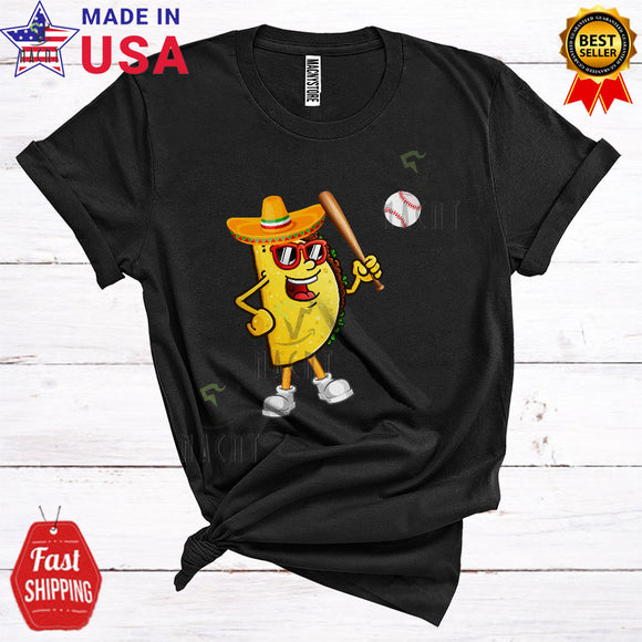 Taco Playing Baseball Cute Cool Mexican Taco Wearing Sombrero Sunglasses Sport Player Team T-Shirt
