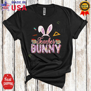 Teacher Bunny Cool Happy Easter Day Leopard Bunny Lover Matching Teacher Group T-Shirt
