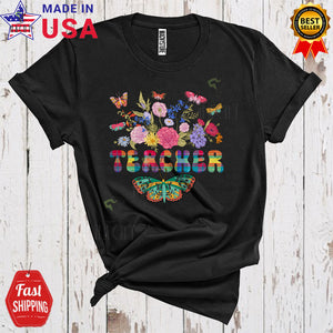 Teacher Cute Cool Plaid Colorful Butterfly Blooming Flowers Matching Women Group T-Shirt