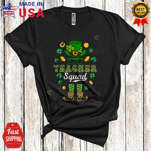 Teacher Squad Cute Cool St. Patrick's Day Shamrock Leprechaun Lover Matching Family Group T-Shirt