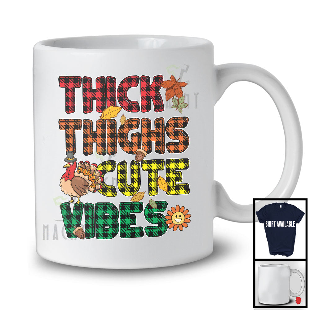 Thick Thighs Cute Vibes, Adorable Thanksgiving Plaid Fall Leaves Flowers Turkey, Family Group T-Shirt. This cotton t-shirt is a durable staple product with a classic fit. One of the most popular items, it has a relaxed style made for everyday and casual wear.