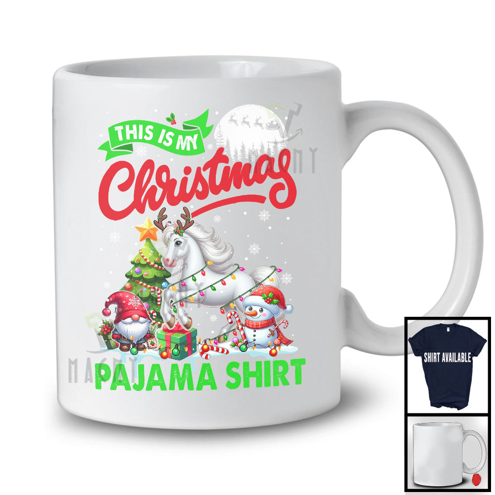 This Is My Christmas Pajama Shirt; Lovely Reindeer Horse Farmer; X-mas Lights Snow Trees T-Shirt